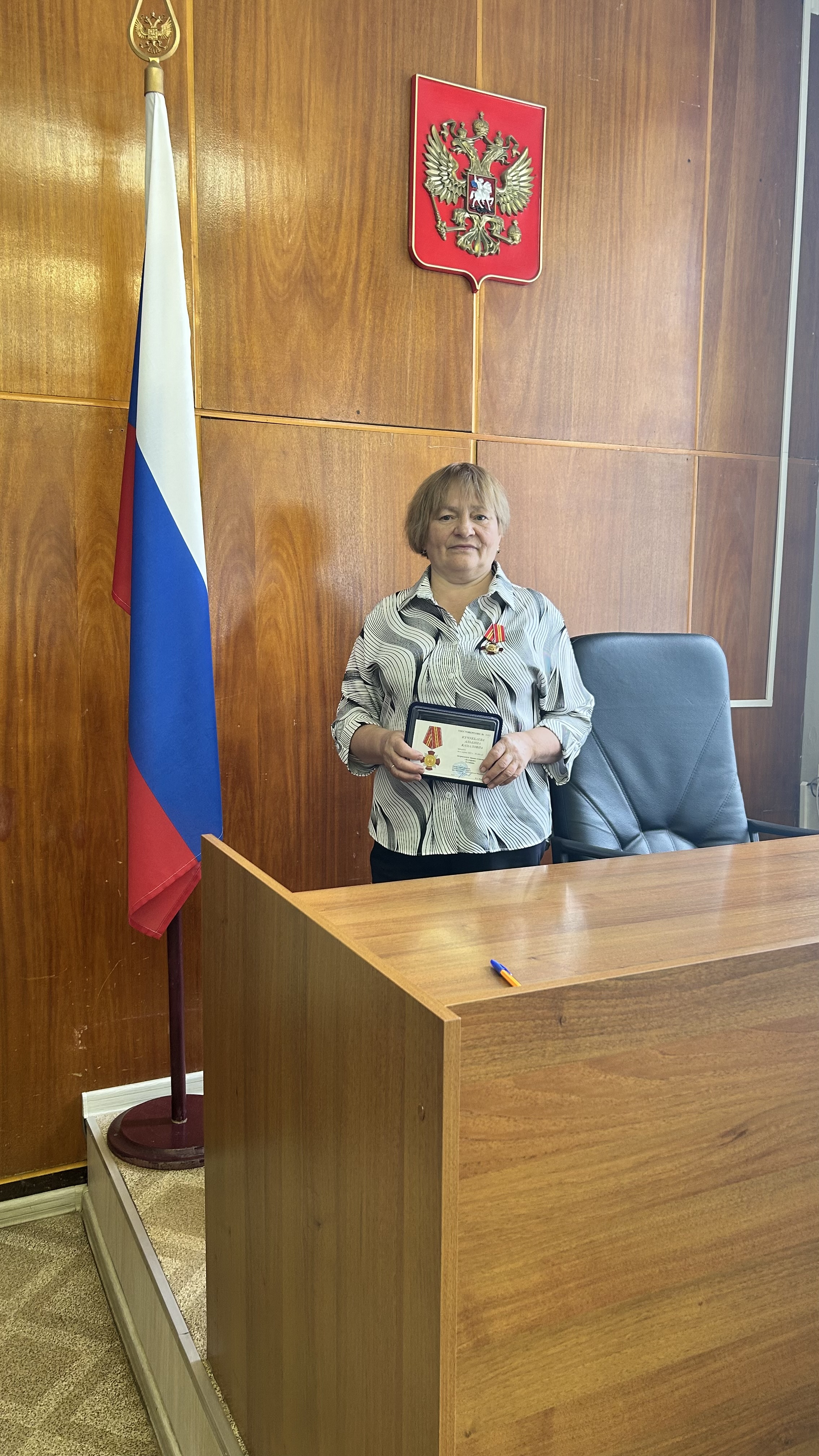 Главный специалист Бардымского районного суда Кучукбаева Альбина Камаловна удостоена знака отличия Судебного департамента при Верховном Суде Российской Федерации «За усердие» II степени. В торжественной обстановке ведомственную награду Альбине Камаловне вручил председатель Бардымского районного суда, коллектив суда поздравил ее с заслуженной наградой, поблагодарил ее за безупречную работу на протяжении более 30 лет, пожелав новых профессиональных достижений. Награждение знаком отличия «За усердие» II степени производится за высокие результаты, достигнутые в исполнении служебных обязанностей по организационному обеспечению деятельности судов, совершенствованию работы системы Судебного департамента, оказанию содействия в проведении судебной реформы, достижение высоких показателей в служебной и хозяйственной деятельности, успехи, достигнутые в совершенствовании профессионального мастерства. |