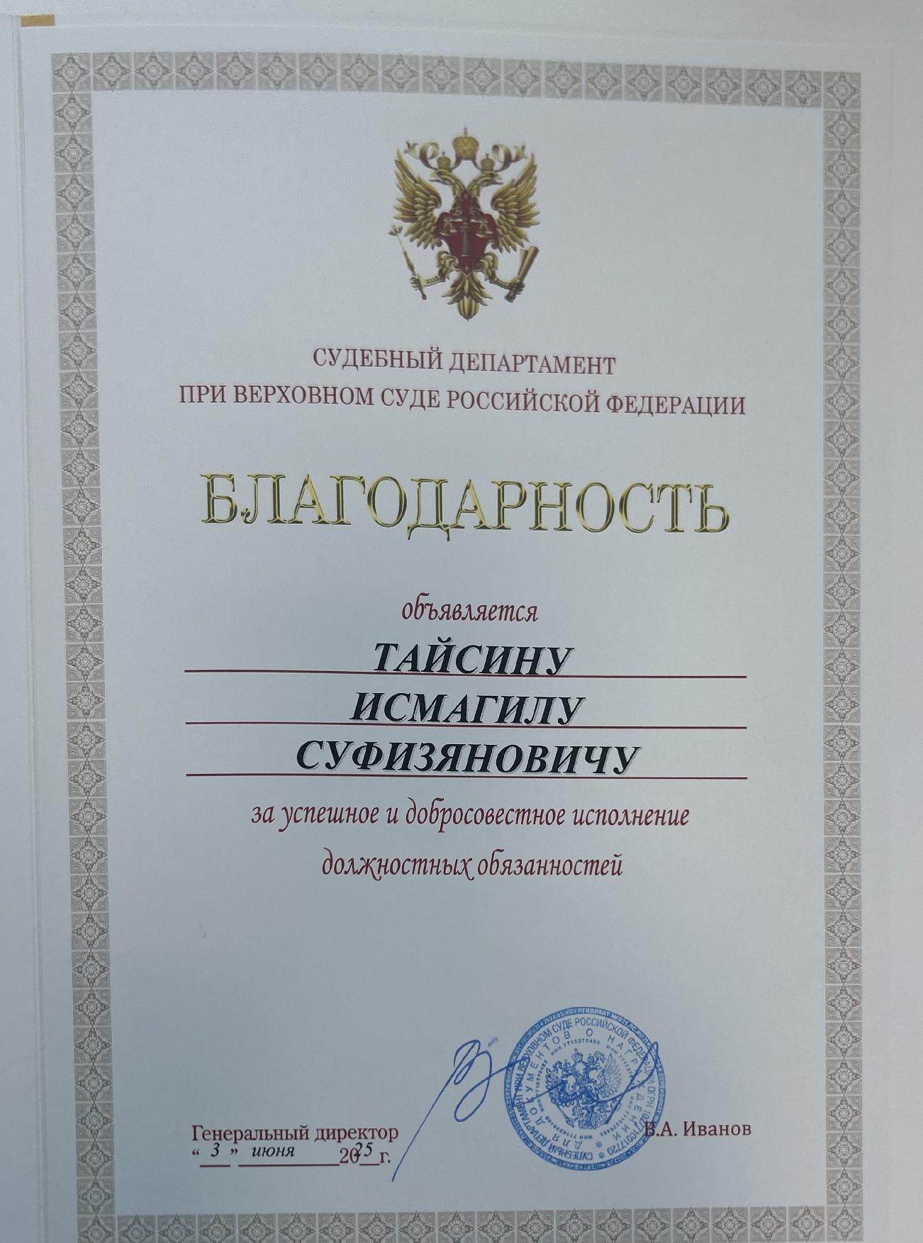 Рабочая неделя в Бардымском районном суде началась с чествования администратора суда Тайсина Исмагила Суфизяновича по случаю его 65-летия и выхода на пенсию. В торжественной обстановке коллектив суда поздравил юбиляра с праздником и выразил признательность за многолетнюю службу. Председателем суда Исмагилу Суфизяновичу была объявлена благодарность Судебного департамента при Верховном Суде Российской Федерации за высокие результаты в деле организационного обеспечения деятельности федеральных судов общей юрисдикции и федеральных арбитражных судов, добросовестное исполнение должностных обязанностей и личный вклад в укрепление органов правосудия Российской Федерации. Исмагил Суфизянович долгие годы с честью нёс нелёгкую службу, ответственно и добросовестно исполнял свои должностные обязанности, а также внёс неоценимый вклад в обеспечение деятельности суда. Его профессионализм, внимательность к деталям, умение находить общий язык с коллегами, а также неизменная порядочность заслужили глубокое уважение у коллег. От всей